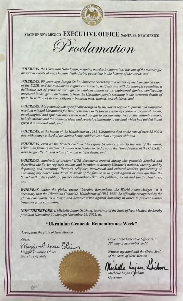 We extend our gratitude to the Governor’s Office and to all friends of Ukraine in New Mexico for their support and for honoring the Ukrainian people’s dedication to the values of freedom and democracy.